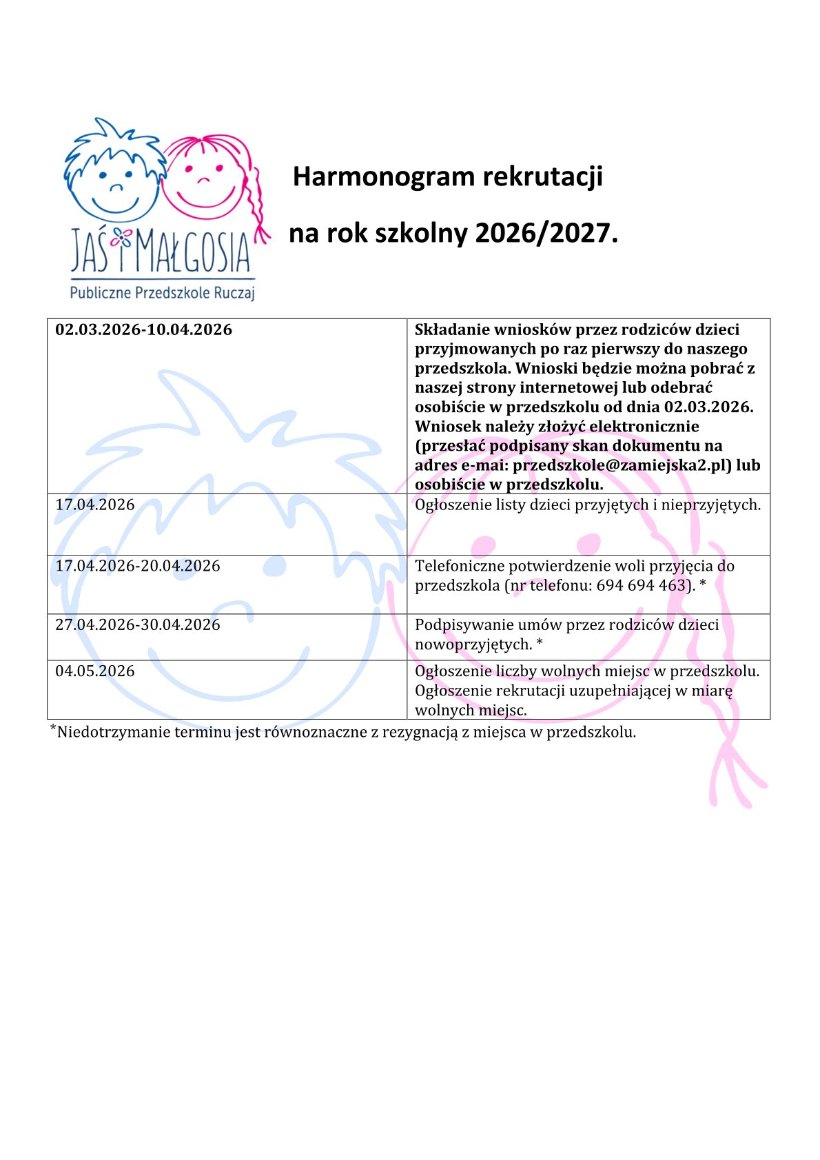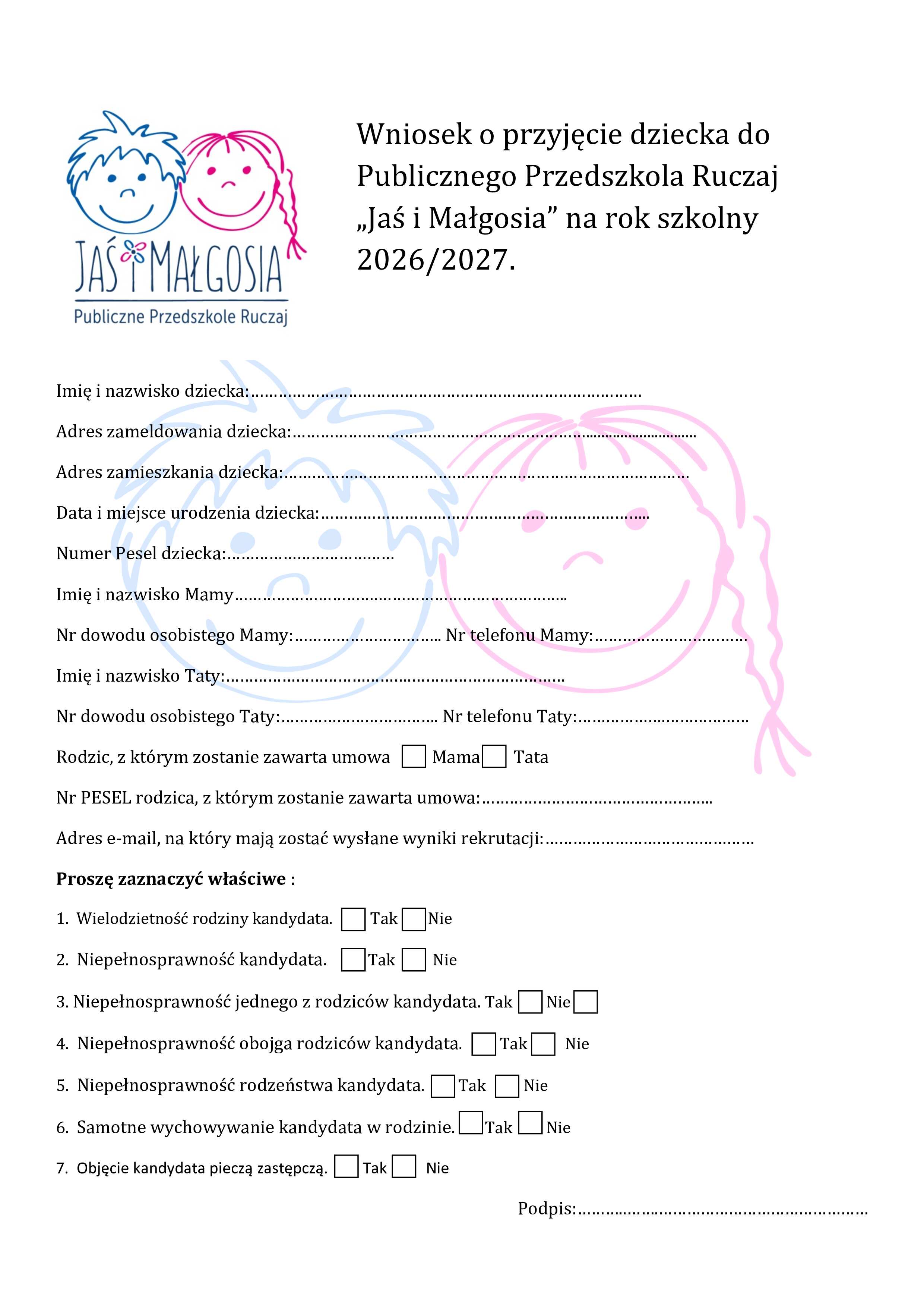 Wniosek o przyjęcie na rok szkolny 2026/2027: